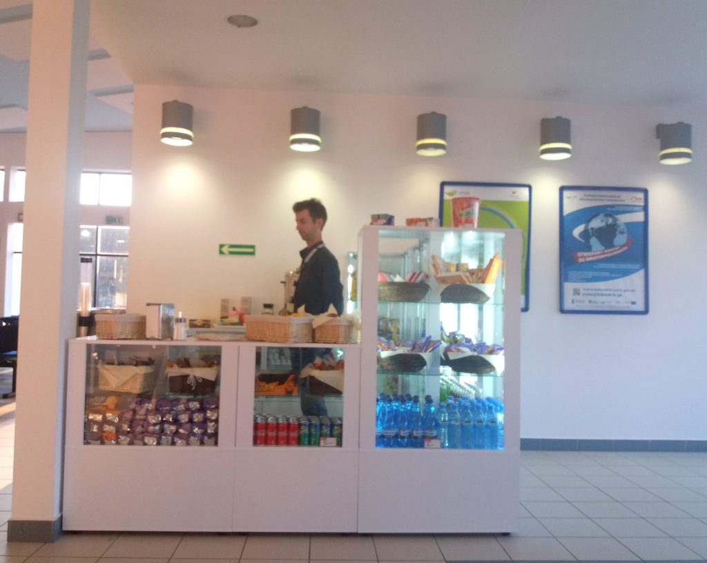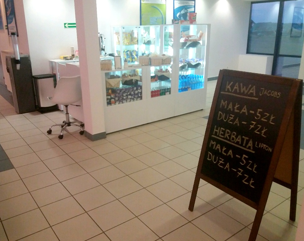 Każdy pasażer czekający na samolot może przed podróżą zjeść śniadanie i kupić w sklepiku kanapki i przekąski, m.in. słodycze, owoce oraz ciepłe i zimne napoje.